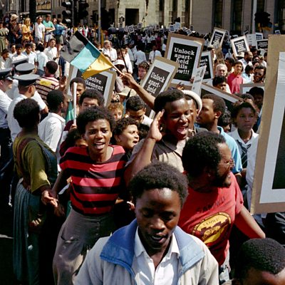 On February 2nd 1990, the South African president FW de Klerk surprised the world by announcing in parliament that he was dismantling apartheid - the system of institutionalised racial segregation which had denied black South Africans their basic rights for forty years, including the right to vote. Louise Hidalgo has been talking to Adriaan Vlok, FW de Klerk's law and order minister, about that day and about coming to terms with the crimes committed in apartheid's name. Picture: Anti-apartheid protestors demonstrate in Cape Town on the same day that President de Klerk announced the lifting of the ban on the ANC and the release of all political prisoners, including Nelson Mandela (Credit: RASHID LOMBARD/AFP/Getty Images)