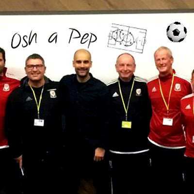 Osian Roberts yn cael cwmni Pep Guardiola ar gwrs hyfforddwyr yn Man City