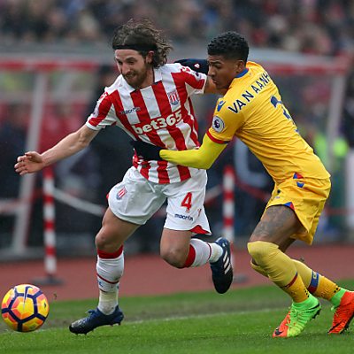 Stoke midfielder Joe Allen reacts to his match-winning goal against Crystal Palace.