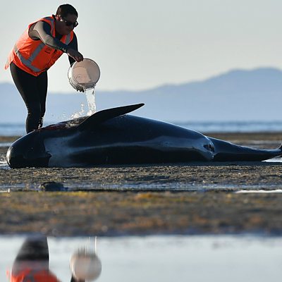 On 10 February 2017, hundreds of pilot whales were stranded on a beach in New Zealand. Outlook's Candida Beveridge went to speak to people on the frontline of the mission to save them. John Di Domenico is an actor who has spent the last 12 years impersonating President Donald Trump. He describes how the recent US presidential election changed his life. (Photo: Volunteer caring for a pilot whale during a mass stranding at Farewell Spit, New Zealand. Credit: Marty Melville/AFP/Getty Images)
