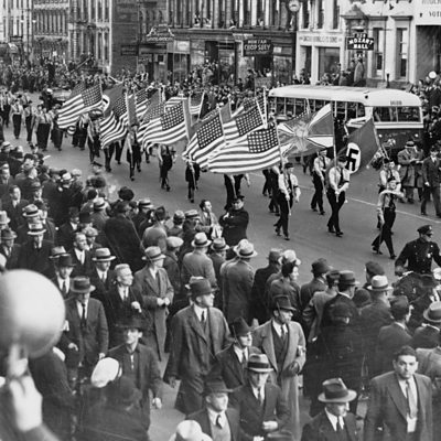 In the 1930s, a group of German-American Nazi sympathisers known as the German American Bund held rallies and summer camps across the US. In Feburary 1939, they held a meeting for 20,000 people at Madison Square Garden in New York. Lucy Burns speaks to Skip Eernisse, who remembers the Bund summer camp Camp Hindenburg in his home town of Grafton, Wisconsin. We also hear from Arnie Bernstein, author of Swastika Nation: Fritz Kuhn and the Rise and Fall of the German American Bund. (Photo: German-American Nazi sympathisers rally in the US. Credit: Library of Congress)