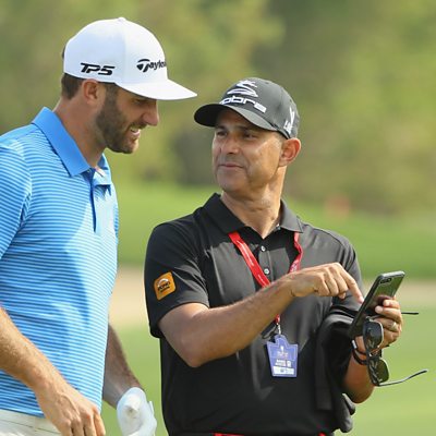 New world number one Dustin Johnson has all the ability to remain at the top of the game according to his coach Claude Harmon. Johnson's victory at the Genesis Open in California saw him move to the top of golf's rankings for the first time. Harmon believes Johnson has all the attributes to make the 'perfect' golfer and his improved lifestyle away from the course has helped the American fulfill his potential. (Image: Dustin Johnson with his coach Claude Harmon III during practice for the Abu Dhabi HSBC Championship. Credit: Getty Images)