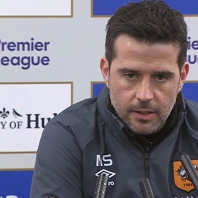 Marco Silva talking to David Burns after their draw with Burnley in the Premier League.
