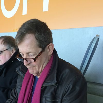 John Prescott and Alastair Campbell talk politics while they watch their teams play.