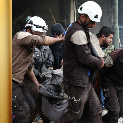 ‘The White Helmets’, a film about the 3,300-strong volunteer rescue group that operates in rebel-held parts of Syria has won the Oscar for best short documentary. Abed Abdulrahman, a spokesperson for the group explains how the victory was bittersweet. (Photo: An Oscar Statue / White Helmet rescuers in Idlib, Syria Dec 2016. Credit: Andrew Walker / Mohamed Al-Bakour)