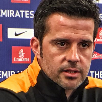 Hull City manager Marco Silva talks to David Burns after the 4-0 loss to Everton.