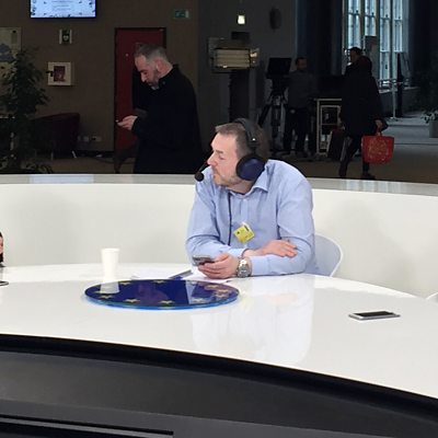 Gary Robertson with Tom Nuttall, the Economist, and Ryan Heath Senior EU Correspondent