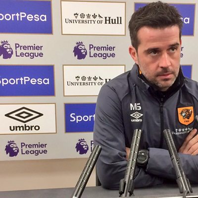 Marco Silva talking to Burnsy after a win over West Ham in the Premier League.