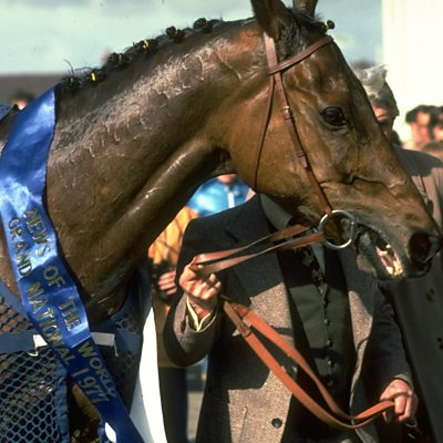In April 1977, Red Rum entered the history books when he became the first and only horse to win Britain's famous Grand National race three times. Red Rum and his trainer, Ginger McCain, became immensely popular figures in the world of racing and beyond. Simon Watts tells their story through the BBC archives. PHOTO: Red Rum in the Grand National winner's enclosure in 1977 (Getty Images)