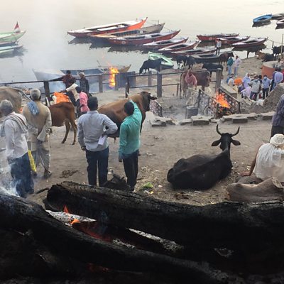 In the Indian city of Varanasi, some 300 cremations are conducted each day on the "ghats" or steps leading down to the River Ganges. The BBC's Rahul Tandon meets pilgrims who spend their last days at this holy place in search of nirvana, and the businesses that thrive on their parting. We visit a guesthouse for those seeking their final check-out, and hear from foreign tourists attracted by the city's ritual and spirituality, not to mention its yoga facilities. Rahul also hears how Prime Minister Narendra Modi - who is also Varanasi's member of parliament - hopes to clean up the town, both of its pollution and of its crime. (Picture: Burning ghat in Varanasi; Credit: BBC)