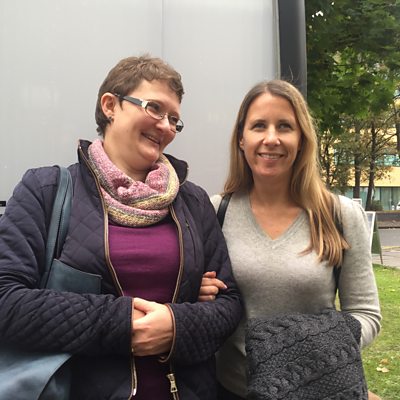 Sarah volunteered as a sighted partner to Shauna. Their friendship has blossomed.