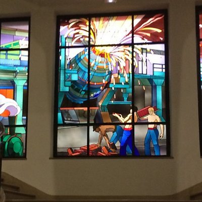 Longwy has a proud history as a steel town but has not recovered from the closure of its foundries in the 1970s. Becoming a stage on the Tour de France puts Longwy back in the spotlight - but some residents question whether that is enough to bring in the income they need. Once known for their left-wing leanings, the voters in Longwy now want politicians who can stop the town's decline. (Photo: Stained glass window honouring the steel foundries of Longwy. Credit: BBC)
