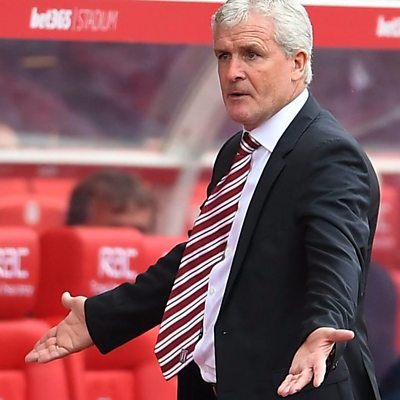 Stoke manager Mark Hughes reacts to The Potters' 2-1 defeat at home to Liverpool.