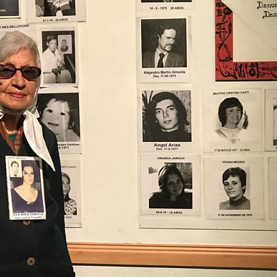 In April 1977 a group of women in Argentina held the first ever public demonstration to demand the release of thousands of opponents of the military regime. It was the start of a long campaign by the women, who became known as the Mothers of the Plaza de Mayo. Mike Lanchin has been hearing from ninety-two year-old Mirta Baravalle who has spent decades searching for her missing daughter and son-in-law, and for the grandchild she has never met. (Photo: Mirta Baravalle, with the black-and-white photograph of her daughter, Ana Maria)