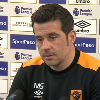 Marco Silva talking to David Burns after a draw at Southampton in the Premier League.