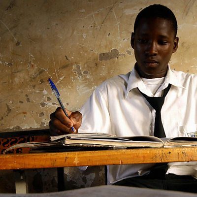 The struggle to get a good education, in an overpopulated school system. With a median age of under 16 years old, Uganda is one of the most youthful countries in the world, but the sheer number of young people means that many struggle to get a good education. A disturbing number are entirely unschooled, or have dropped out of class due to poverty or for other reasons. Others are impressive, with their determination to succeed, even in difficult circumstances. The BBC’s Alan Kasujja travels back to the country of his birth to meet young people at various stages of learning. Image: A boy at a desk in a Ugandan school, Credit: AFP/Getty Images