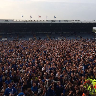 Portsmouth secured promotion to League One in style as a 6-1 win against Cheltenham at Fratton Park saw the blues promoted as Champions. Pompey went in to the day third in League Two but Doncaster and Plymouth both slipped up to send the League Two trophy to Fratton Park. Andrew Moon joined the players and staff on the pitch.