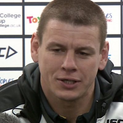 Hull FC boss Lee Radford speaking to Richard Stead after their win at Widnes