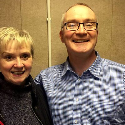 Iain Urchardan a' còmhradh ri neach-ionnsachaidh na seachdain Breege Nic a' Ghobhainn