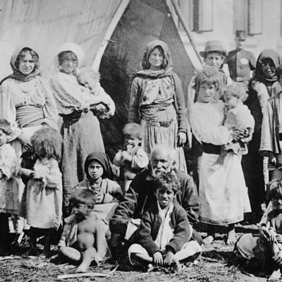 In 1942, the fascist government of Romania deported 25,000 of its Roma citizens to the former Soviet territory of Transdniestria. Half of them died of hunger and disease. Dina Newman spoke to one Roma Gypsy man who was five years old when he was sent to Transdniestria with his family. Photo: Nomadic Roma in Bucharest, Romania, outside their tent. Circa 1930. (General Photographic Agency/Getty Images)