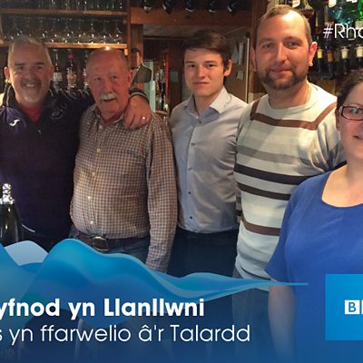 Tommo'n sgwrsio gyda John Jones wrth iddo baratoi i ffarwelio â Thafarn y Talardd.