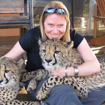 British conservation biologist Dr Amy Dickman was working with big cats in Namibia when she discovered that one of them had a problem with its tooth. Photo: Amy Dickman with two of her big cats Credit: Amy Dickman