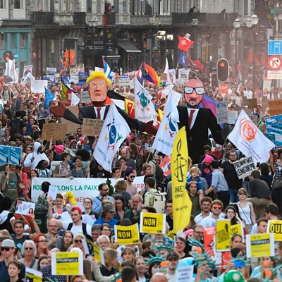 Thousands Demonstrate In Brussels As US President Arrives For EU And NATO Talks