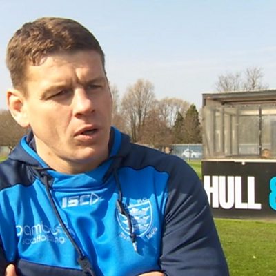 A disappointed Lee Radford with Richard Stead after a Magic Weekend defeat.