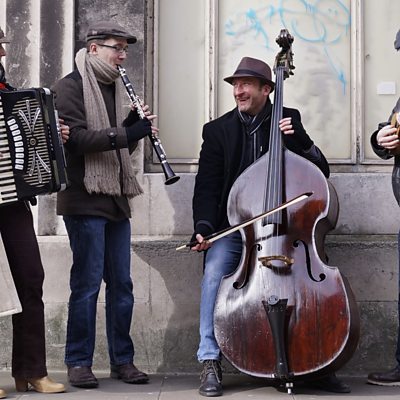 Klezmer-ish performing live on World on 3. Friday 2nd June 2017 Thomas Verity (clarinets, whistle) Rob Shepley (guitar, violin, vocals) Concettina Del Vecchio (piano accordion, violin) Marcel Becker (double bass) 1. Pendelasul Fetelor (Romanian folk song) 2. Give me a lift to Tzfat (klezmer style tune by Joachim Heim) 3. Scottish medley: Fingal's Cave-Timor the Tartar-Tarbolton Lodge (trad.) 4. September sun (gypsy jazz style tune by Rob Shepley)