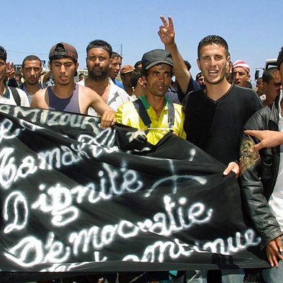 Hundreds of thousands of Algeria's indigenous people, the Berbers, marched to the capital Algiers in June 2001 for a massive demonstration demanding more rights. In particular, they wanted official recognition for the Berber language, Tamazight. Zeinab Dabaa has spoken to Berber activist Rasheed Alwash about the demonstration. Photo: Berber youths, who walked from their village in Kabylia region to take part in the rally in the capital Algiers. Credit: AFP/Getty Images