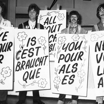 In June 1967, the Beatles were invited by the BBC to appear on the world's first live TV broadcast, called Our World. In a now iconic appearance, the band played a new song called All You Need Is Love, which captured the anti-war spirit of Swinging London. Simon Watts talks to Mike McCartney, performer with the Scaffold and brother of Paul McCartney. (Photo: The Beatles at the "All You Need Is Love" recording. Credit: Getty Images)