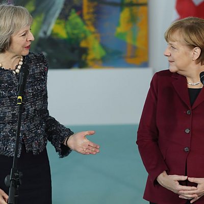 Sebastian Borger, London Correspondent for Berliner Zeitung, says Angela Merkel would prefer a Conservative majority, despite not being a friend of Theresa May. (Picture: Theresa May (L) and Angela Merkel (R). Credit: Getty Images)