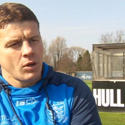 Simon talks to Hull FC coach Lee Radford after the game.