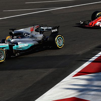 Ferrari's Sebastian Vettel and Mercedes' Lewis Hamilton react to their safety car crash. This clip is from 5 live Formula 1 on Sunday, 25 June 2017.