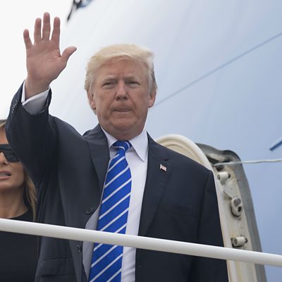 President Donald Trump is starting a trip to Poland then Germany for the G-20 meeting. Polish journalist Wojciech Przybylski tells us what sort of reception Mr Trump can expect at the first stop, and we consider his agenda for the G-20 with Elmar Brok, a member of the European Parliament for Angela Merkel's ruling Christian Democratic Union party. Also in the programme, carmaker Volvo has announced that all its new models launched after 2019 will feature electric motors. British motoring journalist Maria McCarthy tells us how big a move this actually is. East African supermarket chain Nakumatt has been forced to close several stores recently. The BBC's David Wafula in Nairobi tells us why the company has run into trouble. Plus, we celebrate the 80th anniversary anniversary of Spam, the canned meat made famous by Monty Python. Food historian Lizzie Collingham tells us why it has a varied reputation in different parts of the world. (Picture: Donald and Melania Trump board Air Force One. Picture credit: Getty Images.)