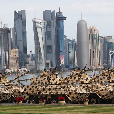 The tiny state behind a global diplomatic feud. Qatar's landmass is so small it could fit into the UK 20 times over. Its citizen population is just a few hundred thousand. Yet this desert country finds itself at the centre of a geopolitical dispute, with its powerful neighbour Saudi Arabia leading a blockade against it and President Donald Trump firing off critical Tweets. So how did this bantam-weight state end up slogging it out with the world's heavyweights? In other words, what's so special about Qatar? Presenter: James Fletcher Producer: Simon Maybin and Sarah Shebbeare (image: Doha city skyline, with armoured vehicles, Qatar. Credit: Karim Jaafar/Getty images)
