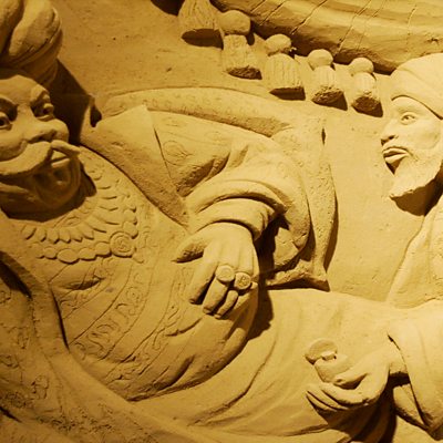 The One Thousand and One Nights are a collection of fantastical stories of flying carpets, magic and genies whose ancient origins go back to the 7th century or earlier. The tales are told by Scheherazade who uses the power of storytelling night after night to stop her Sultan husband from beheading her ... These highly influential stories were brought to the West in the 18th century, when more tales like Aladdin and Ali Baba were said to have been added by the French translator, and it has continued to evolve over the centuries. Rajan Datar and guests explore why these stories became so popular around the world and what they mean to us today. Joining Rajan is Wen Chin Ouyang, Professor of Arabic at SOAS in London; Dr Sandra Naddaff, senior lecturer in Comparative Literature at Harvard University; and the Iranian TV producer Shabnam Rezaei. Photo: Sand Sculpture depicting 1001 Nights of Sheherazade. (Getty Images)