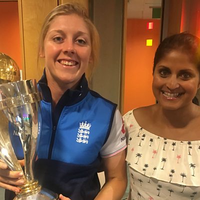 Heather Knight: "I've just noticed the World Cup has a scratch....maybe I shouldn't say that live on the radio!"