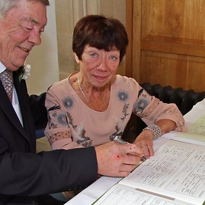 Joan and Norman Payne met by accident when Joan was passing time, waiting for a bus. Norman - who was living in Germany at the time - was visiting family in Blandford. They lost touch but tracked each other down through a Dorset magazine and got married at the weekend!
