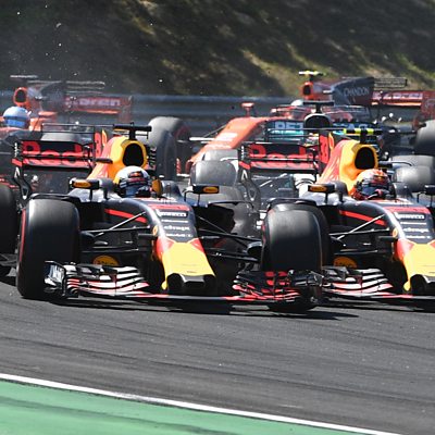 Red Bull's Daniel Ricciardo retires on the first lap after a collision team-mate Max Verstappen.