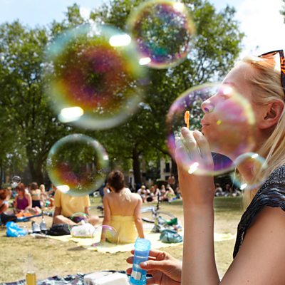 We're programmed to strive higher, for a better position, salary, career - but Rachel Bridge advises that, if you're not enjoying what you do, do something else instead. Joe Udo tells his story of becoming a stay at home dad when he found the aspirations of office life were failing to excite him. Picture: Woman blowing bubbles in a park Credit: Getty Images