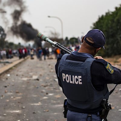 A story of crime and often no punishment. South Africa's notoriously violent record has been getting worse. The number of murders and violent crimes is rising as public confidence in the police falls. Officers themselves have been linked to a series of high-profile cases, including spectacular heists at the country's main international airport. South Africa's police minister has called for "a firmer, disciplined force". So, are South Africa's police failing? (image: A riot police officer gets ready to fire a stun grenade into a crowd during clashes in Johannesburg May 8, 2017. Credit: Gulshan Khan/ Getty Images)