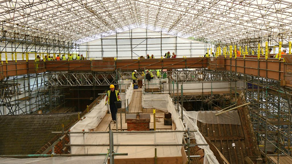 One of Britain’s most historic homes, The Vyne near Basingstoke, is looking for rooftop walkway volunteers. A major storm badly damaged the building in 2013 and visitors can now watch the huge roof being repaired, from a 360° rooftop walkway. Jean Morton has been volunteering at The Vyne for many years, so BBC Radio Berkshire's Bill Buckley asked her a simple question... why? "There are so many benefits, I think I read somewhere that if somebody volunteers they'll live longer. "Before I came to live in Hampshire I used to live in France...it was wonderful opportunity when I saw the advert to volunteer to be surrounded by beautiful trees and fields and things, but also to meet very nice people. "I do tours in the house, I do taster tours, and now I'm doing the roof as well. You are up there for hours on end."