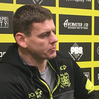 Hull FC's Coach chats with Chris Cooper ahead of the Super 8s game with Salford.