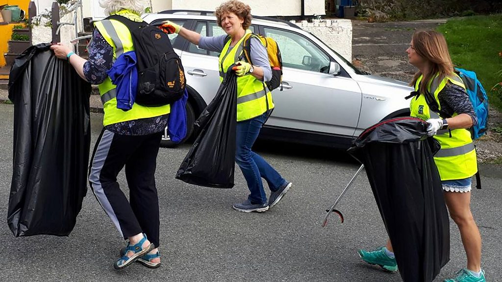 Rhian Price yn clywed am gynllun newydd i gadw Llanberia yn daclus.
