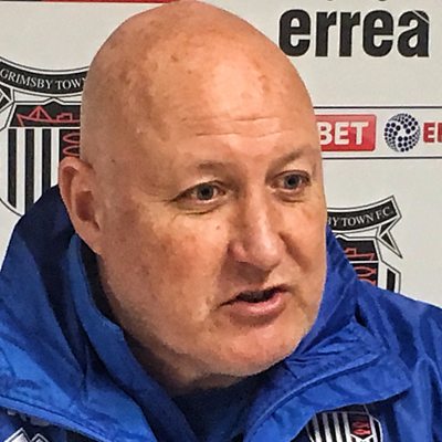 Grimsby boss Russell Slade chats with John Tondeur before the re-arranged Carabao Cup tie.