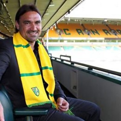 Daniel Farke talks to Chris Goreham after a win over Charlton in the Carabao Cup.