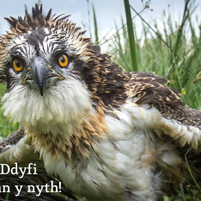 Alwyn Evans yn son am Gweilch y Ddyfi sydd newydd adael y nyth, ac ar eu ffordd tuag at Yr Affrig.