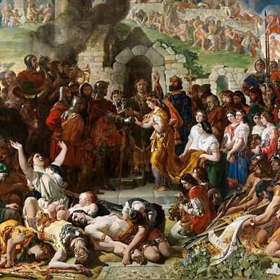 Tuairisc Aonghus Uí Lochlainn ó Ghailearaí Náisiúnta na hÉireann áit ar phlé Diarmuid de Faoite an pictiúr drámatúil, 'Pósadh Strongbow agus Aoife'. Insíonn an pictiúr ola álainn seo scéal phósadh Richard de Clare, nó Strongbow mar is fearr aithne air, agus iníon Dhiarmait Mhic Murchada, Rí Laighin, Aoife i 1170 i bPort Láirge. Aonghus Ó Lochlainn reports from the National Gallery where Diarmuid de Faoite discussed the dramatic painting 'The marriage of Strongbow and Aoife' by Daniel Maclise. Daniel Maclise’s (1806-1870), The Marriage of Strongbow and Aoife following conservation funded by the Bank of America Merrill Lynch Art Conservation Project. Photo © Maxwell Photography