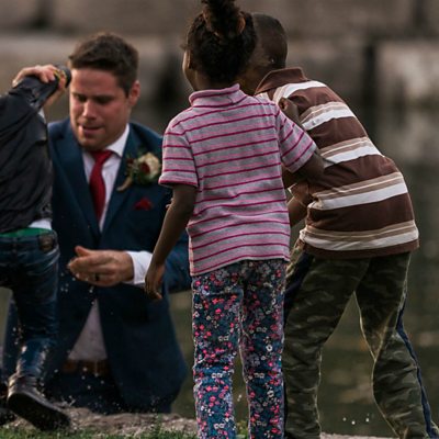 A wedding photoshoot in Canada took an unexpectedly dramatic turn as the groom leapt into a river to save a little boy from drowning. Clayton and Brittany Cook were posing for wedding photos on a park bridge in Cambridge, Ontario, when the groom noticed a boy in distress in the river. Mr Cook jumped into the water and pulled the young boy on to the shore. The couple spoke to Newsday. (Photo: Canada groom saves child from drowning in river. Credit: Darren Hatt/Hatt Photography)